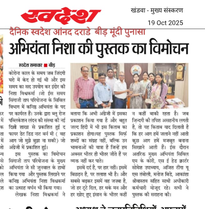 Nisha Vishwakarma is a civil engineer by profession and a writer by soul, working in the public sector where she carries the dual responsibility of building structures and shaping lives. Her life’s journey has been one of courage, reflection, and resilience — teaching her that true strength lies not only in concrete and steel but also in the quiet endurance of the human spirit.