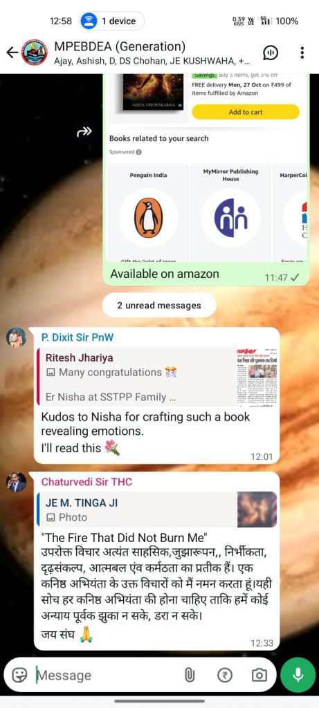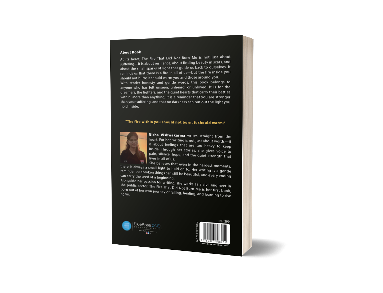 “The Fire That Did Not Burn Me” is a moving and powerful debut that explores pain, resilience, and renewal. Through raw reflections and lyrical writing, Nisha Vishwakarma takes readers on a transformative journey from silence to self-acceptance. A book for anyone seeking hope, healing, and the courage to rise again.