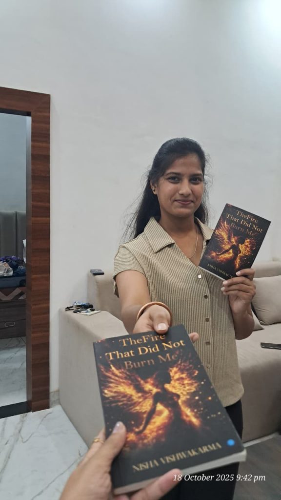 The Fire That Did Not Burn Me marks her debut as an author, born from her personal journey through silence, struggle, and healing. For Nisha, writing is not just storytelling — it is truth expressed through vulnerability, courage transformed into words, and pain turned into purpose.